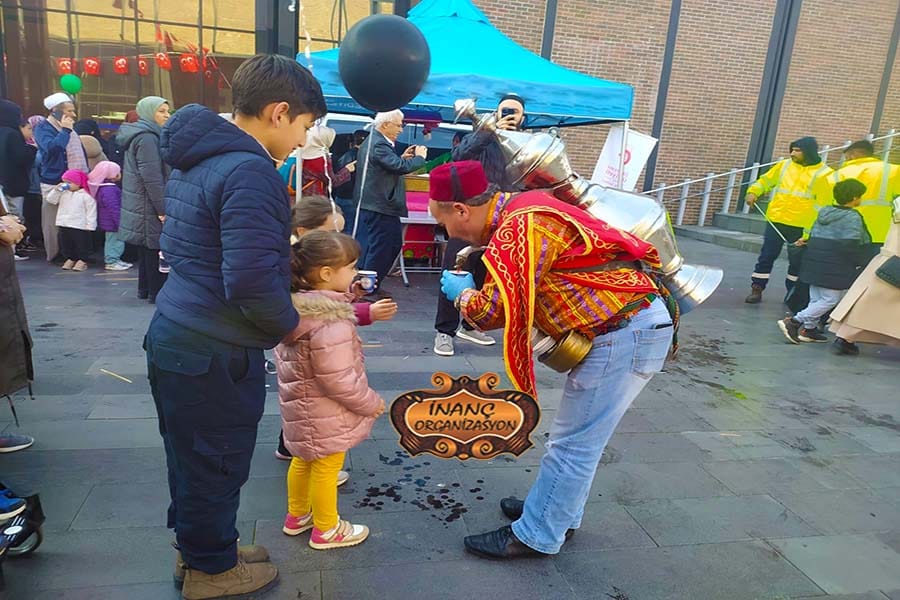 Sık sorulanlar: Kıyafet konsepti (Osmanlı kaftanı/şerbetçi tarzı), stand ölçüleri, aroma seçenekleri ve alerjen bilgileri rezervasyon sırasında netleştirilir. Talep hâlinde ramazan şerbetçisi, pamuk şeker ve patlamış mısır ile kombine paket oluşturulabilir.