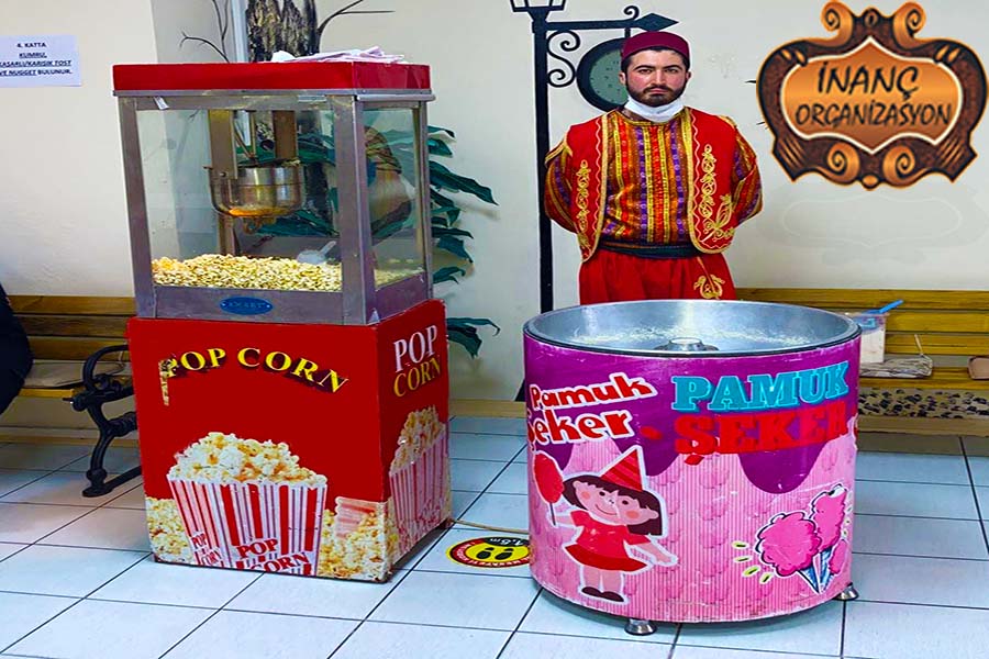 Özellikle doğum günü organizasyonlarında patlamış mısır arabası kiralamanın yanında pamuk şeker, palyaço, balon gösterisi, balon süsleme, şişme karakterlerde çokça tercih edilmektedir