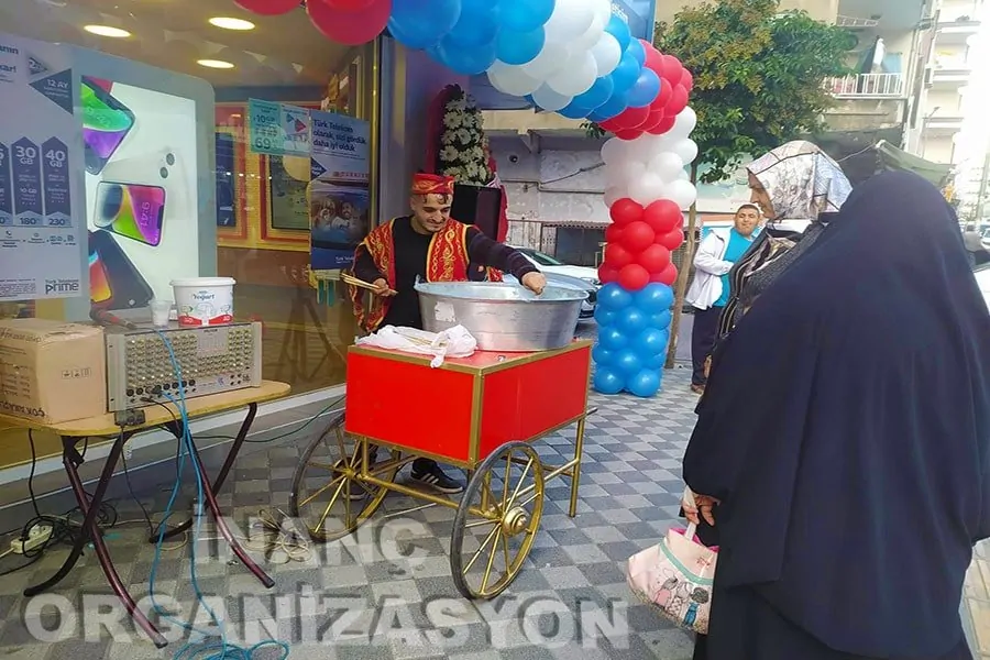 Açılış organizasyonu yaparken marka tanıtımını daha kaliteli ve zengin yapmak için sınırsız seçenekleri sizlere arz ediyoruz. Mağaza açılışında belirlediğiniz gibi Osmanlı macunu kiralama, lokma dağıtımı, pamuk şekeri arabası kiralama, Osmanlı şerbeti, pilav tavuk veya pilav et ikramları bizden talep ederek daha görkemli bir tanıtım gerçekleştirebilirsiniz.