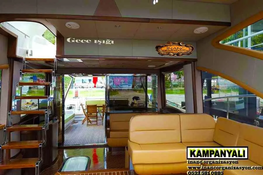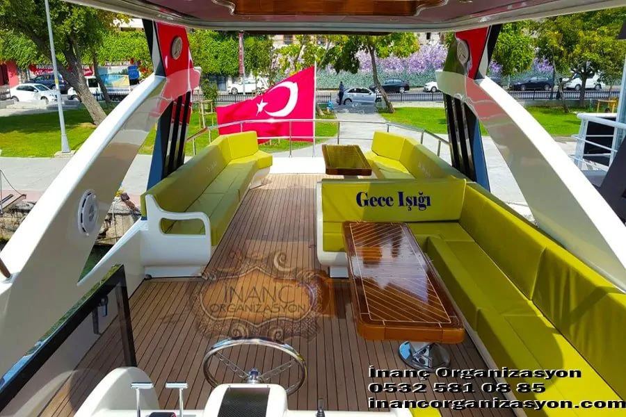 Yat Kiralama İstanbul Gece ışığı ile İnanç organizasyonun lüks Yat Kiralama Türk bayraklı ve ticari tekne özelliğini taşıyan aracıdır.