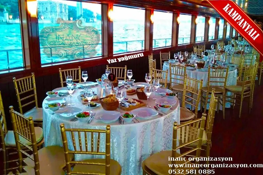 Boğazda yemekli tekne turları, inanç organizasyon farkı ile İstanbul’un gözdesi Boğaziçi’nin benzersiz manzarasını dostlarınızla birlikte doyumsuz bir zaman geçirmeniz için olanak tanıyoruz.