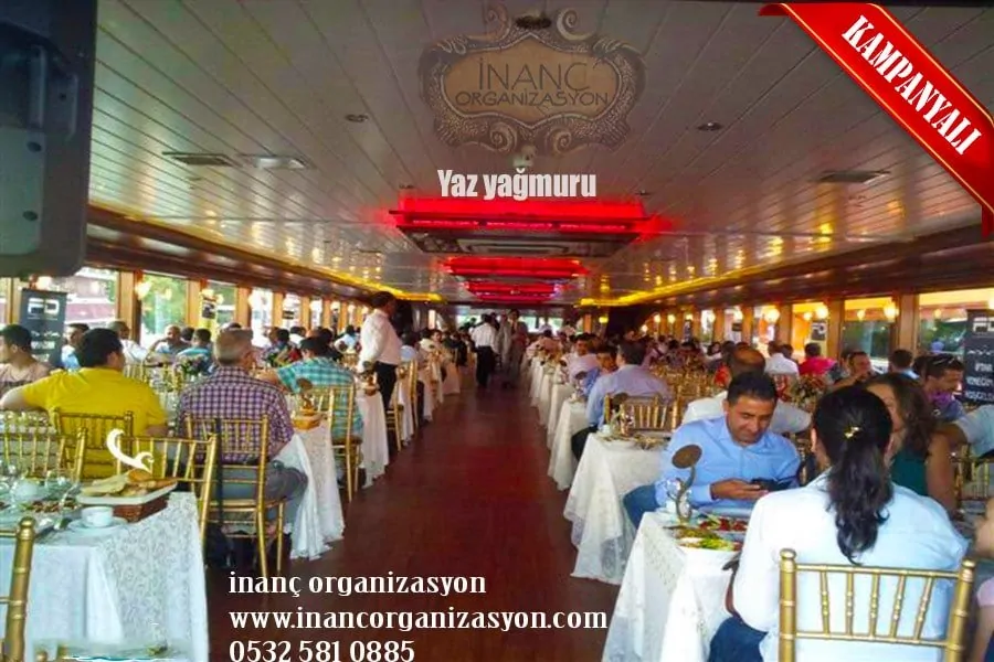 İstanbul boğazda yemekli tekne turu fiyatları organizasyona göre 1000 TL – 2000 TL arasında değişmektedir. Hizmet sektöründe gerekse fiyat konusunda inanç organizasyon daima en iyisini en kalitelisini ve en uygun fiyatları sizler için hazırlamaktadır.